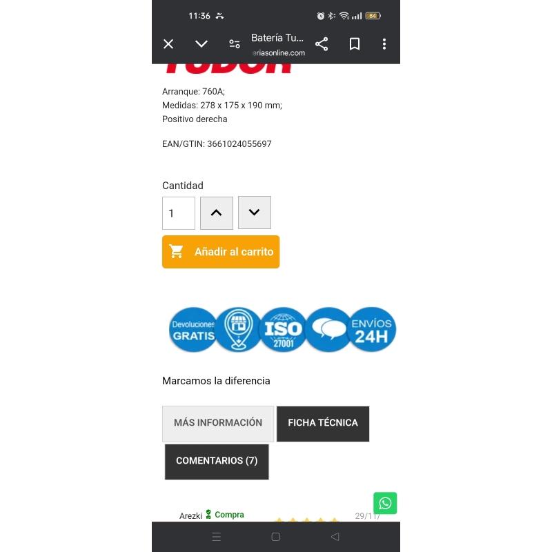 La batería de momento bien pero el envío un desastre por varios sitios pone envío en 24h pero vamos la pedi un domingo y hasta el miércoles a las 8 de la tarde no llego