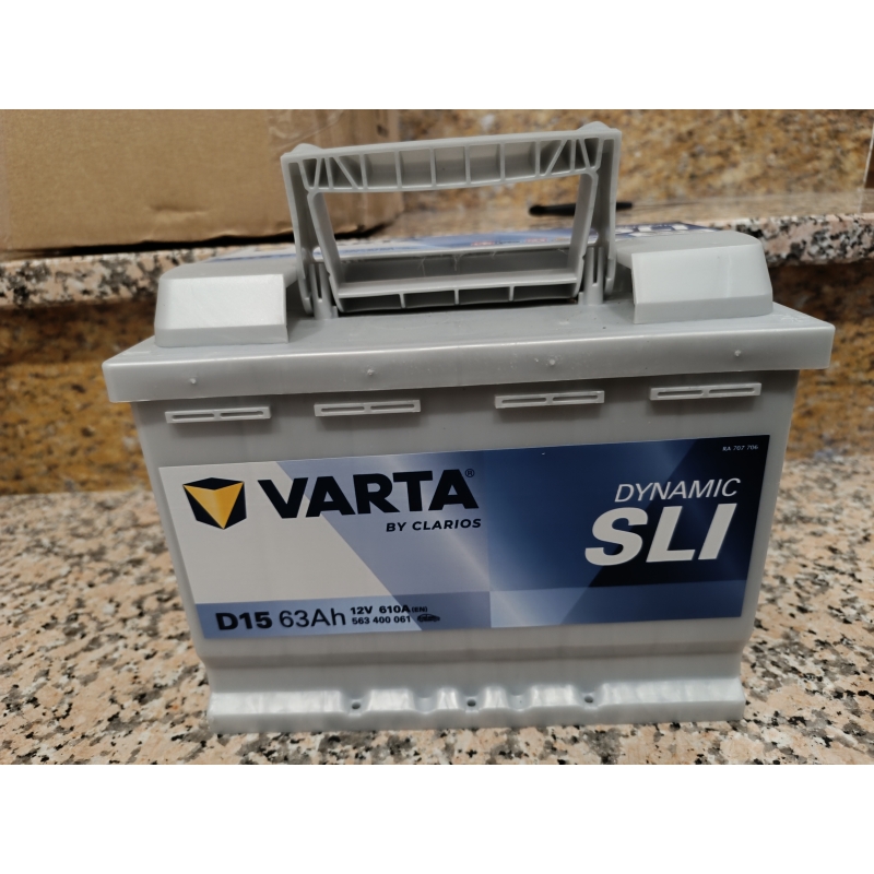 La Batería Varta D15 de la serie Silver Dynamic tiene una capacidad de 63Ah con una potencia de arranque de 610A. Sus medidas son: 242x175x190 mm. Es una batería de arranque y se utiliza en todo tipo de vehículos.