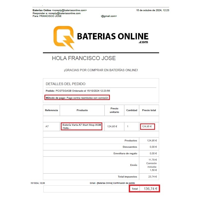 Tienda de baterías online con productos de 1ª marcas y máx. calidad, con un servicio de pago, envió y atención al cliente a unos precios inmejorables.<br /> Volveré a esta pagina para seguir comprando mis baterías y de amigos y familiares.<br /> Recomiendo es tienda a todos 100%