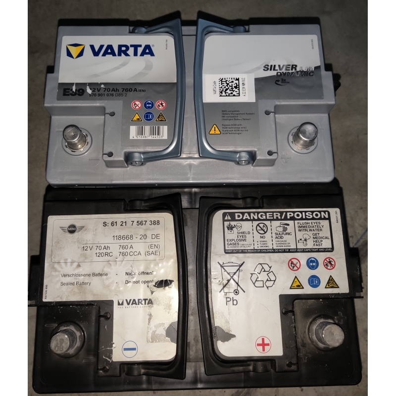 La Batería Varta E39 pertenece a la gama Silver Dynamic AGM, tiene una capacidad de 70Ah con una potencia de arranque de 760A. Sus medidas son: 278x175x190 mm. Es una batería de arranque y se utiliza en vehículos con sistemas avanzados START-STOP con recarga con sistema de frenada regenerativa. Puede sustituir la batería start-stop EFB N70, aportando mayores prestaciones.